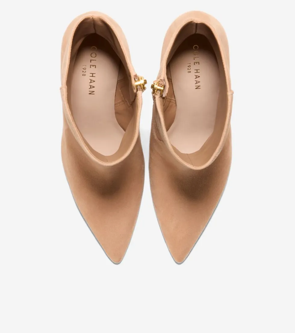 The perfect juxtaposition of sharp and soft: the Mackenna Stiletto Bootie in sumptuous suede, from the 1928 Collection. The sharp: a sleek pointed toe and 85mm stiletto heel. The soft: a gently curved topline and stealth layers of plush cushioning.